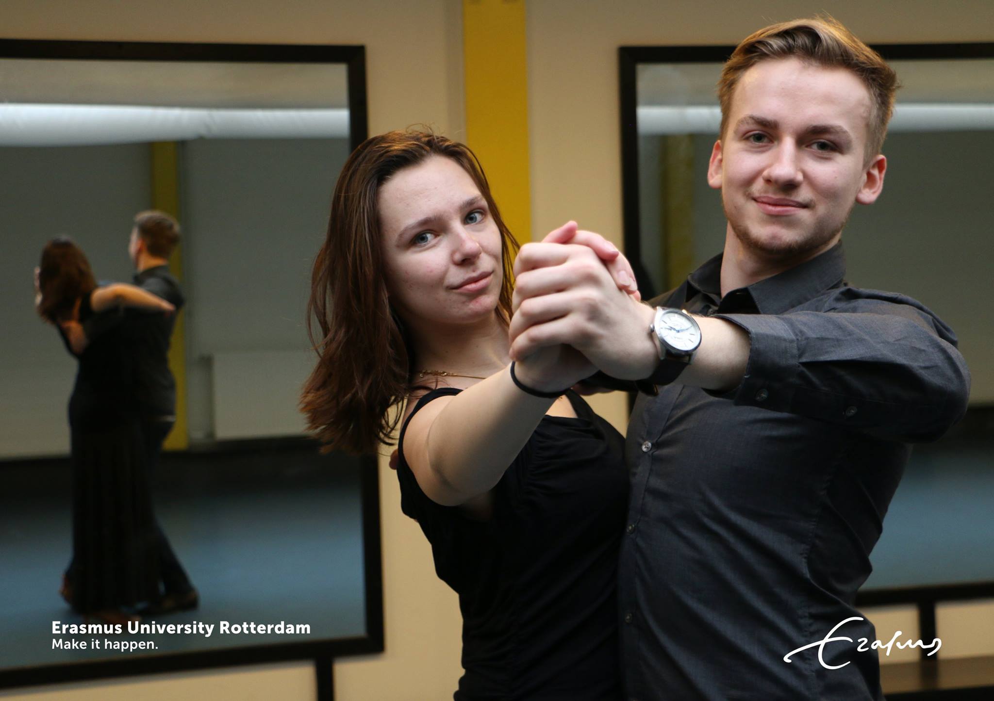 Joanna: “There wasn’t any time to dance there though. But because we’d brought our shoes and everything, we thought we’d have a practice. We dance Latin and ballroom. Usually we go to classes twice a week at Erasmus Dance Society and we also attend extra workshops or lectures and practise on our own. I did some dancing at primary school back in Poland, but had to quit after two years. So I was really happy when I found that I could continue dancing at EUR!”