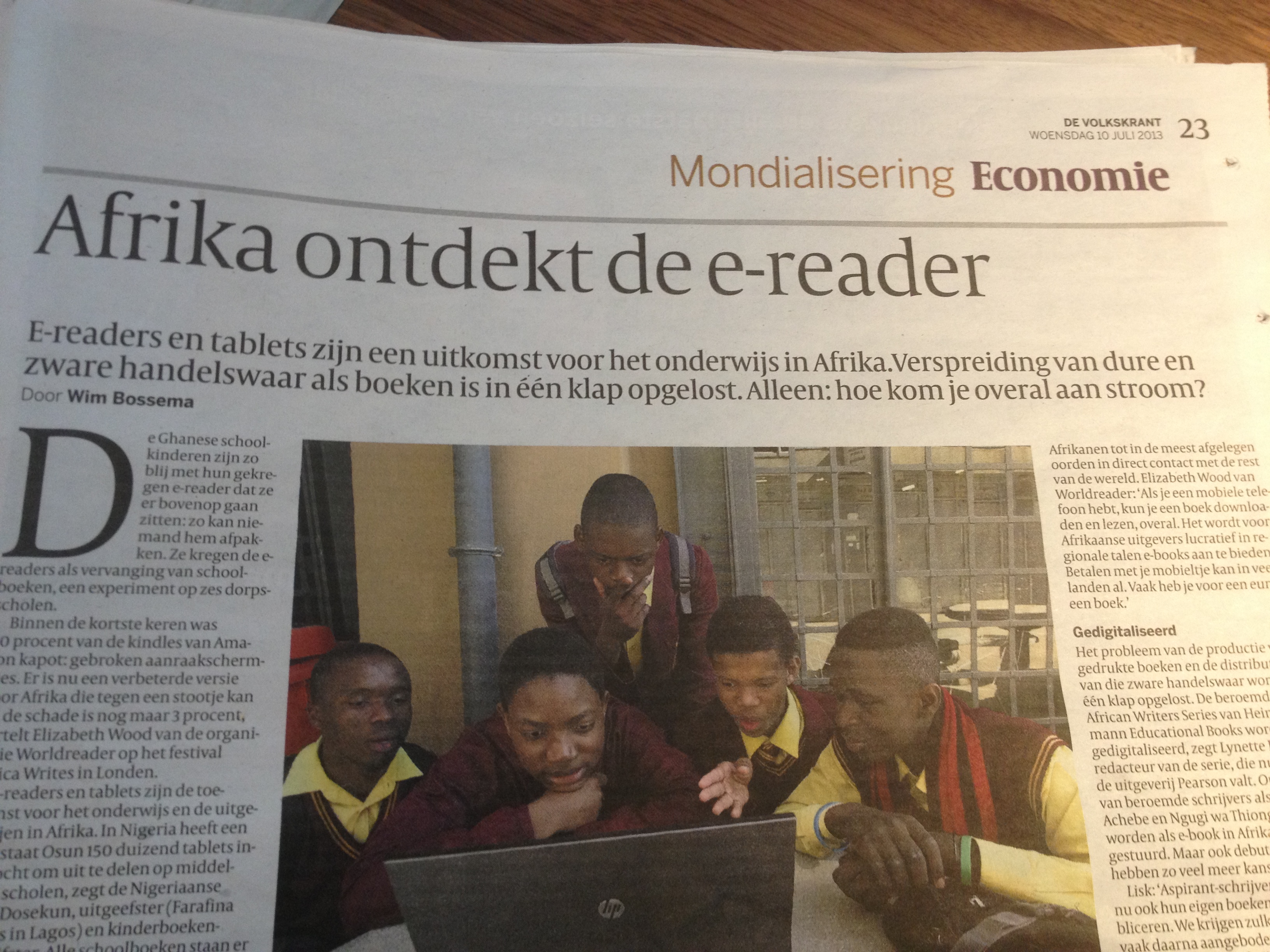 Dagelijks lees ik in de Volkskrant een artikel dat mijn antropologisch hart sneller doet kloppen. Mooie, doeltreffende en inspirerende artikelen over mondiale kwesties vanuit een lokaal perspectief bezien: daar houden wij Utrechtse antropologen van! Vanmorgen dus ook weer: “Afrika ontdekt de e-reader”.