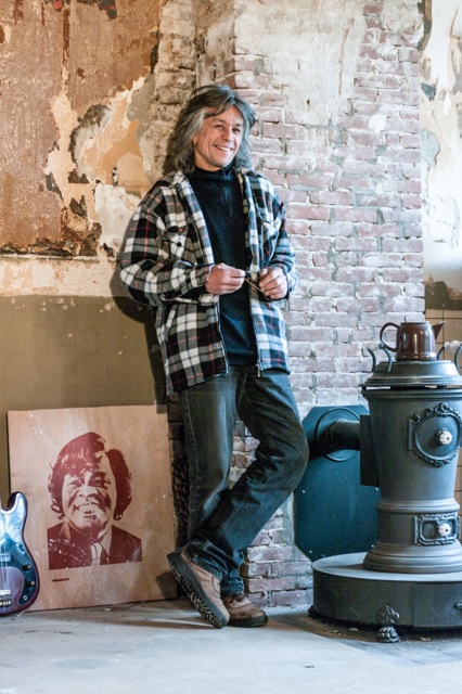Een klein ringetje in zijn rechteroor en een volle bos grijs haar geven hem een markant uiterlijk.