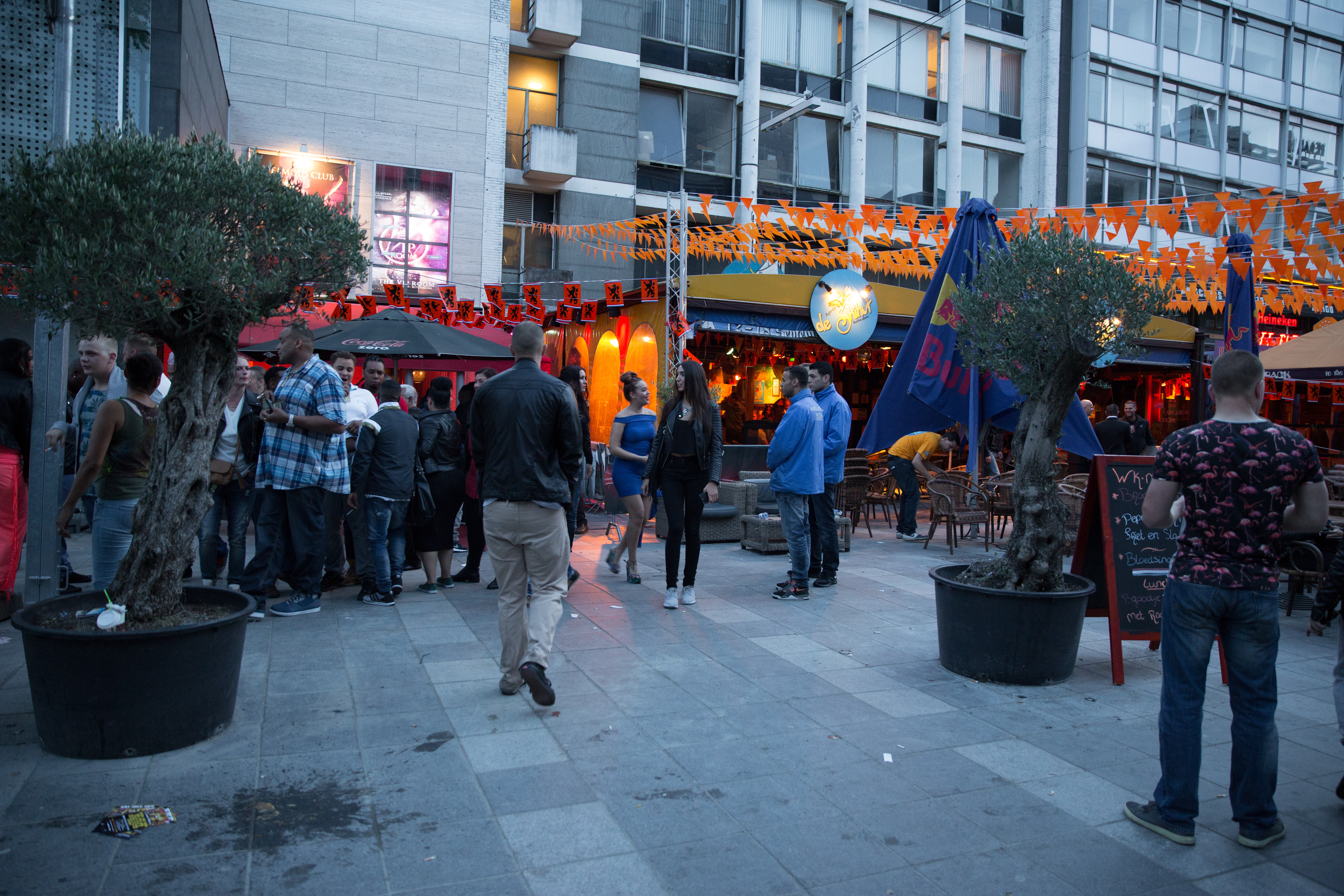 “Ça Va?” Ziya verschijnt met een grote lach aan de bar. Ze is Frans, maar geboren in Algerije. Haar zwarte bob en zware smokey eyes matchen goed met haar strapless jurkje. Ziya heeft in bijna alle Rotterdamse clubs gewerkt, maar in OQ is ze op haar plek, vertelt ze. Ze werkt hier vier avonden in de week. Ze prijst de club om het professionele, integere management en de beveiligers die ogen in de rug lijken te hebben. “Hier voel ik me veilig.” Met haar cocktails loopt ze terug naar haar tafeltje, waar twee Marokkaanse jongens zitten en een meisje gehuld in jurk met jarretels. Het groepje praat Frans.